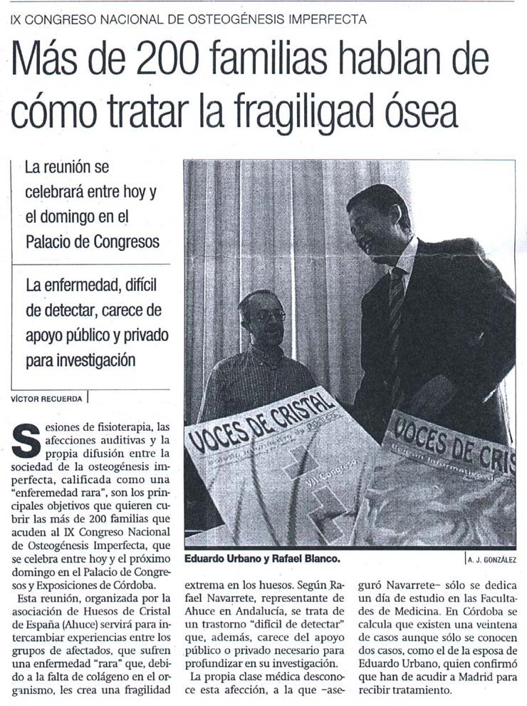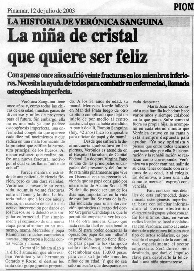 2008/05/26 - Clarin.com. Conexiones - Osteogenesis imperfecta - Huesos de cristal. Enlace a la versión original en clarin.com.