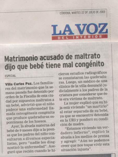 2009/02/19 - Diario UNO. Mendoza. El caso de Enzo Lucero, un niño con "huesos de cristal".
