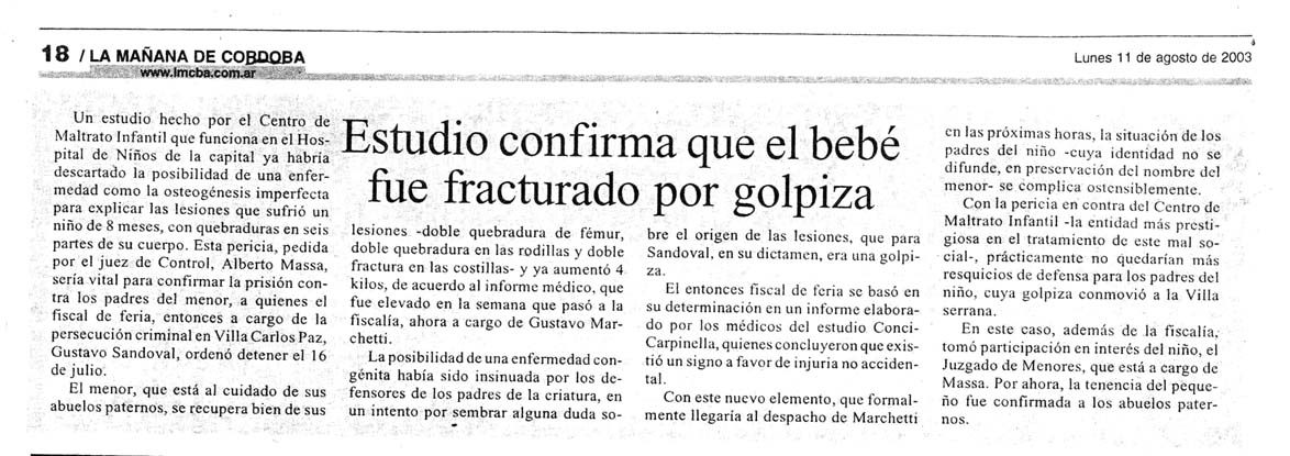 mañana de Córdoba. "Estudio confirma que el bebé fue fracturado